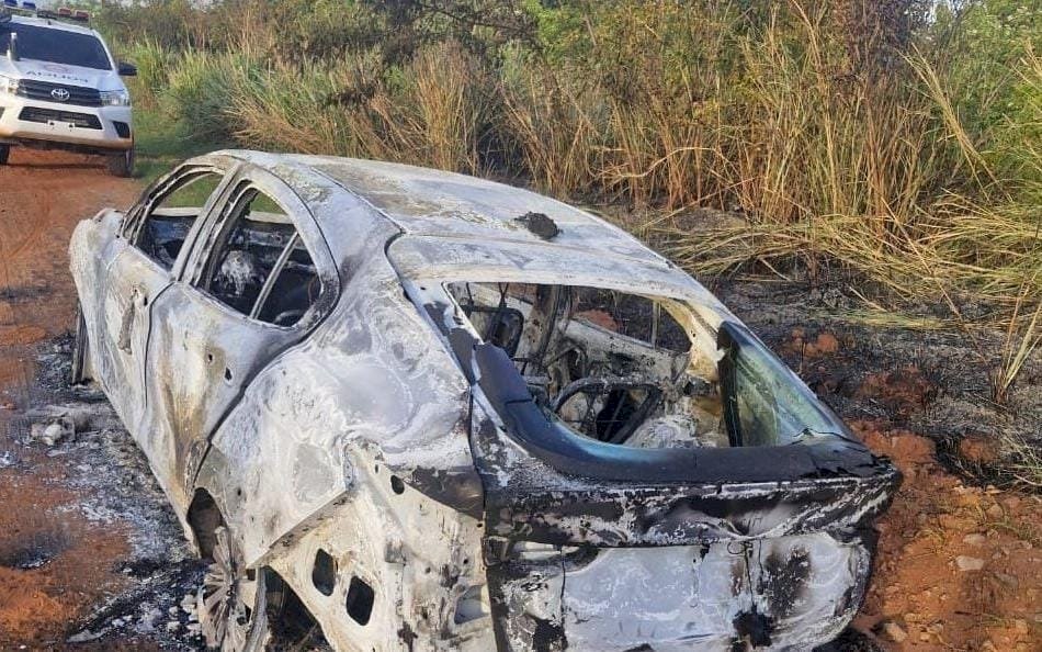 O veículo que pode ter sido utilizado no atentado ocorrido na última terça-feira (21), em Pedro Juan Caballero foi encontrado totalmente queimado na madrugada deste sábado (25). O SUV Fiat Fastback, foi localizado em uma estrada vicinal na região da Colônia Fortuna Guassu.