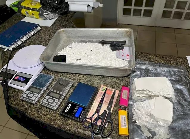 Na casa, a Polícia Militar encontrou vários homens embalando drogas. Havia balanças de precisão, tesouras, facas, sacos de lixo para embalagem e vasilhas com grande quantidade de cocaína. A droga era embalada em trouxinhas, em pó, e em barras.