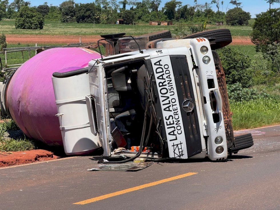 No início da tarde desta quarta-feira (19), por volta das 12h10, um caminhão Mercedes-Benz 2423K, modelo betoneira carregado com concreto usinado, tombou enquanto seguia sentido Amandina–Ivinhema pela BR-376. O acidente ocorreu nas proximidades do Eco Park, em Ivinhema.