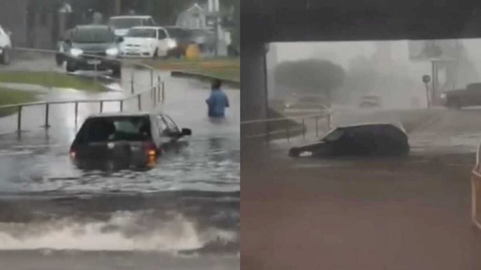 Vídeos encaminhados a reportagem mostram que na zona urbana, carros ficaram submersos e condutores precisaram sair dos veículos e atravessar a enxurrada, com água atingindo a cintura, para se abrigar em pontos sem alagamento.