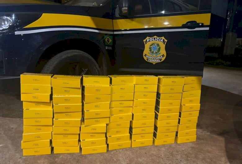 A Polícia Rodoviária Federal (PRF) apreendeu 70 celulares, nesta quinta-feira (23), em Água Clara.