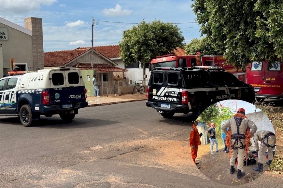 No local, militares do Corpo de Bombeiros de Ivinhema realizaram uma operação de resgate utilizando equipamentos especializados e técnicas de altura para a retirada do corpo, que posteriormente foi encaminhado para os procedimentos periciais.