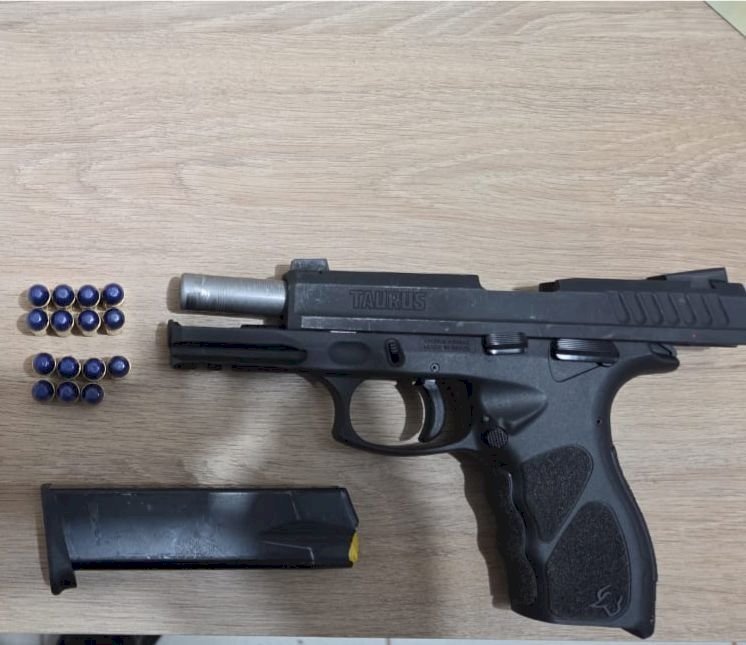 Durante a vistoria, os policiais militares encontraram uma pistola Taurus calibre 9mm, modelo TH9, municiada com uma munição na câmara e 14 no carregador. Após conferência dos documentos apresentados, foi constatado que a Guia de Tráfego Especial estava vencida.